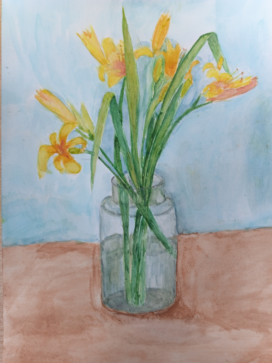 Я не знала что обычные цветы в банке могут быть такими красивыми на картине.