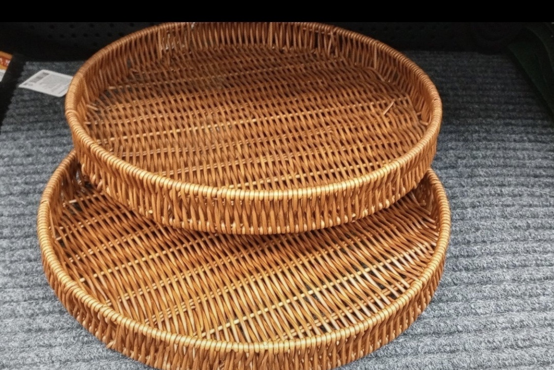 Всем огромный привет! В магазин Фикс Прайс привезли подносы круглые. Стилизованы под ротанг. Диаметр 30,5 см. Выдерживает температуру от -20 до +100 гр. В составе сталь и полипропилен. Изготовитель Китай. Стоимость 299 рублей. Подставка под ложку из бамбука. Диаметр 10 см. Очень удобная! Цена 87 рублей. По 124 рубля в наличии есть набор кухонных принадлежностей. В наборе 2 лопатки, ложка и емкость для хранения. В составе бамбук. Изготовитель Китай. Коробка для хранения из бамбука. Внутри имеется тканевый чехол. Цена 249 рублей. Новинка! Шейкер для холодных напитков. Цвет в ассортименте. Объем 760 мл. В составе полипропилен и пшеничное волокно. Цена 170 рублей. Из этого же материала в наличии есть набор посуды. В этом наборе 4 предмета: миска, кружка, вилка и ложка. В наличии три цвета. Цена 170 рублей. Этажерка двухъярусная из опалового стекла с деревянной ручкой. Ярусы разные по размеру. Продается в разобранном виде. Изготовитель Китай. Цена 400 рублей. В продаже появился лейко