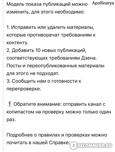 Также дзен мне прислал рекомендации, как выйти из блокировки канала.