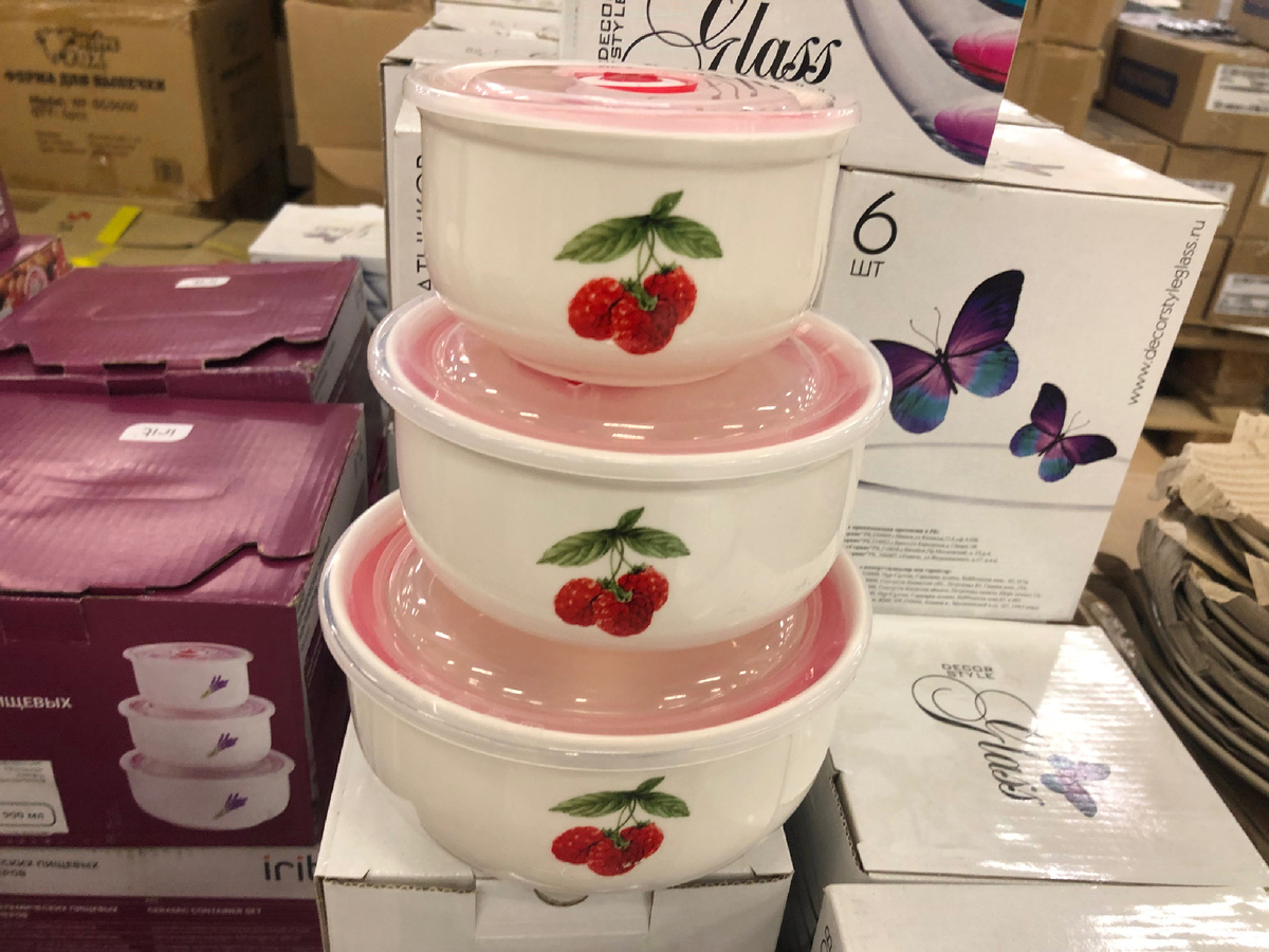 Всем огромный привет! Сегодня мы с вами посмотрим ассортимент посуды и товаров для кухни в магазине Светофор. Выбор очень большой! Всё охватить я конечно не смогу, но самое интересное покажу. Очень нравятся вот эти наборы керамических контейнеров. Можно их использовать и как салатник для сервировки стола. Они очень симпатичные! Имеется на каждом контейнере красивый декор. Кстати, в магазине 2 дизайна: лаванда и ягодки. Как уже сказала, контейнеры изготовлены из керамики. В комплекте с ними пластиковые крышки с клапаном. В наборе 3 шт разного объема. Продаются они в коробке. Изготовитель ТМ IRIT Китай. Цена 348 рублей. А какие красивые есть чайные пары! Да, они дорогие, но и качество очень хорошее. Тут брака как в Фикс Прайс не найти. Не придерешься! Посуда изготовлена из фарфора. Цвет белый с золотой каймой. Чашка объемом 220 мл, блюдце диаметром 14 см. Каждая пара продается в индивидуальной упаковке. Производитель Китай. Цена 320 рублей. В большом ассортименте по декору в продаже е