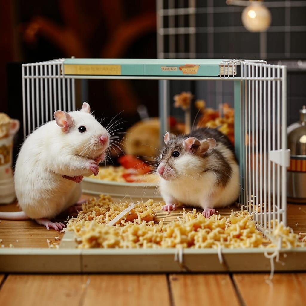 Сначала моя крыса (Соня) жила в клетке одна, пока я не принесла милого джунгарского хомяка, Жорика. Важно понимать, что не все крысы и хомяки будут хорошо ладить друг с другом, поэтому важно следить за тем, как они взаимодействуют, и быть готовым разделить их пространство, если это потребуется, при совместном проживании этих двух видов) В моем случае мои питомцы сразу поладили. Вместе играют, грызут свою еду вместе.. Вообщем крыса Соня оказалось любезной и без проблем приняла нового друга, джунгарика)