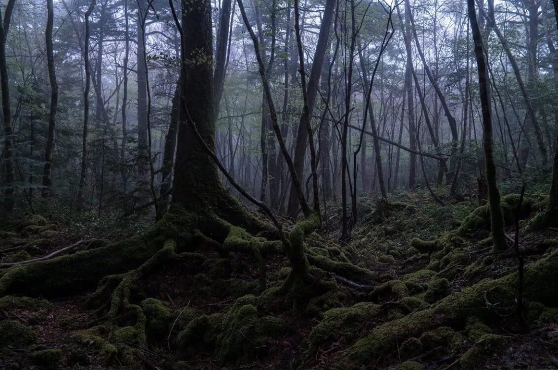 С наступлением сумерок об этом месте начинают говорить лишь шёпотом. Исчезновения людей и частые самоубийства — вот оно, настоящее лицо Аокигахара. Туристам строго наказывают не сворачивать с основных троп в глубь леса потому что здесь легко заблудиться. Магнитная аномалия делает компас совершенно бесполезным предметом, а похожая местность не позволяет найти выход по памяти. О многочисленных призраках, обитающих в лесном массиве, издавна слагают легенды. Печальную известность это место приобрело еще в средние века, когда в голодные годы, доведенные до отчаяния бедняки приносили своих престарелых и немощных родственников в лес и оставляли там умирать. Стоны этих несчастных не могли пробиться сквозь плотную стену деревьев, и никто не слышал стенания обреченных на мучительную смерть. Японцы говорят, что их призраки подстерегают в лесу одиноких путников, желая отомстить за свои страдания.