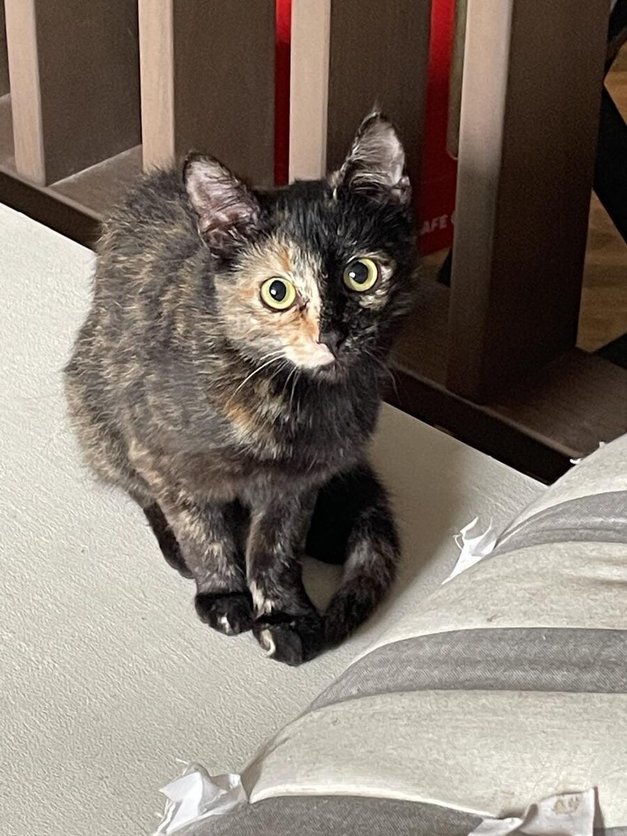 Малышка уже социализировалась, но только исключительно в своей среде.Любит сидеть на ручках или лежать на груди и человеческом пузике.Там тепло и не страшно.Малышка очень веселая, вертлявая, "огонь"!