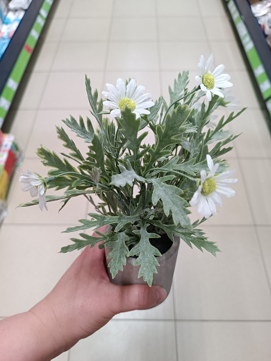 Приветствую! Хочется быстрее показать вам все новники! Но сегодня я часть покажу из прошлого завоза, которые не успевала, и часть из нового. А завтра будет полный обзор уже из новой коллекции. В этот раз очень понравились новинки искусственных цветочков декоративных в горшочках. Ромашек еще не было, эти просто прелестные и очень реалистичные. Высота: и ромашки есть кроме белого еще и сиреневые: посмотрите поближе сверху тоже: Вместе с ценником на ромашки заодно решила вам всю полку показать с декоративными растениями. Тут все время что-то довозят, пополняют. В наличии многое есть. Орхидеи здесь только розовые. Для дачников давно не показывала. Привезли удобрение, но ценника пока нет на него, стоимость потом можно будет на сайте посмотреть или в приложении. Описание показываю: В прошлый раз Идея, кажется, сказала, что Виктора Пелевина купила. Вот, к нас тоже довезли это Путешествие, наконец. И еще серия бестселлеров немецкого АМАЗОН. Их три, отличаются названиями, не думайте, что пока