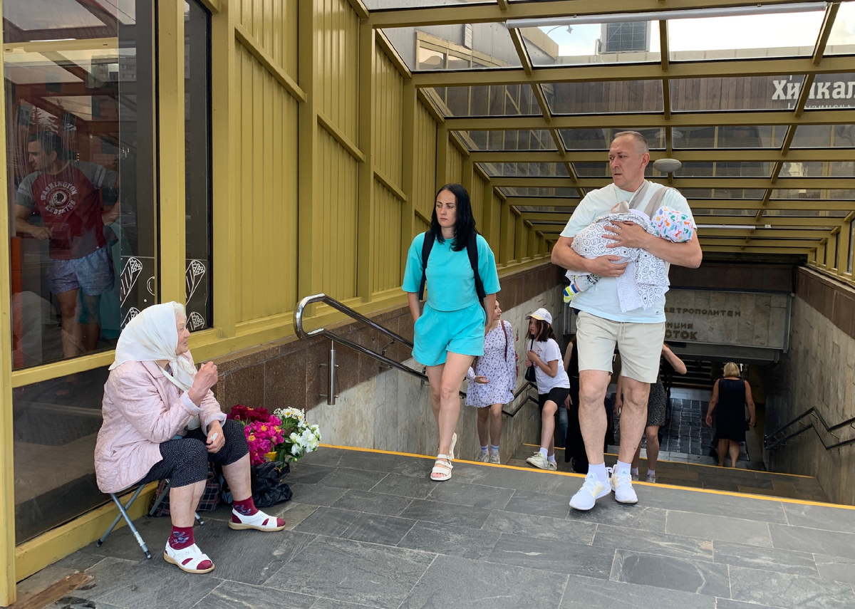 Возле входа в подземный переход сейчас сидит старушка. Она продает цветы. У нее пенсия 750 рублей. По Российским меркам - это 22500. - Пенсия у меня маленькая. Есть, кто и побольше получает. Я проработала всю жизнь в детском саду. Стараюсь дома экономить на электричестве и воде. Живу напротив. Вон, дом. У нас на все стоят счетчики. Вот, и цветы продаю. Экономлю и мне хватает. - Вам дает государство какую-то помощь на лечение, к примеру? - Зубы вставляем платно. К нам пенсионеры из России приезжают. У нас это стоит дешевле. Я все равно очень рада, что Лукашенко у нас,- неожиданно перевела тему бабушка. Благодаря ему у нас в стране сейчас мирно. Недалеко от бабушки продает цветы мужчина с обгоревшим от солнца лицом. Он предлагает прохожим купить у него единственный букет.