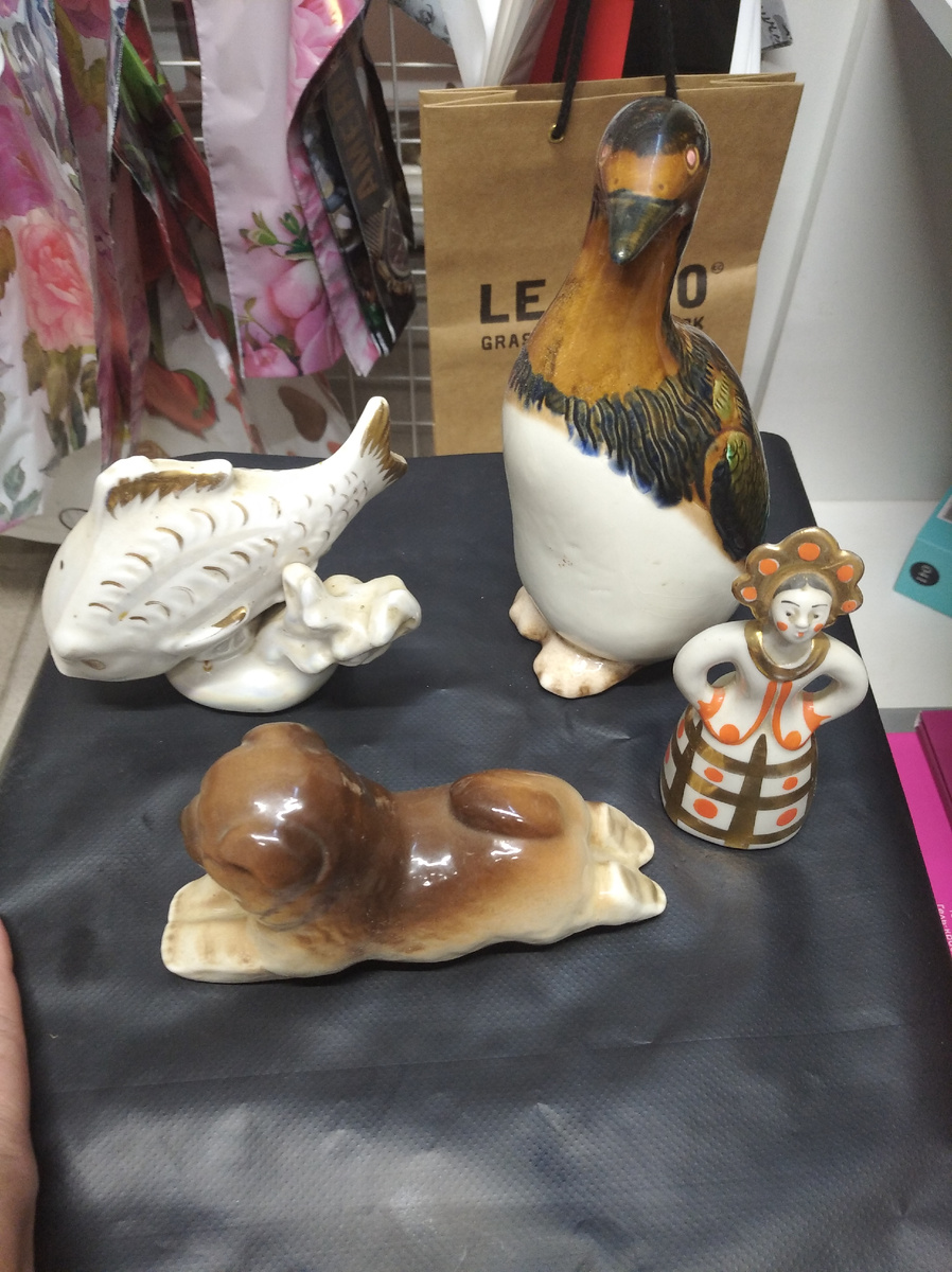 Привет , друзья, без вас не разберусь. Помогите !)))) Сижу в магазине , работу работаю, и приносит мужчина ,говорит из серванта бабушки или к вам, или на мусорку . Итого 9 предметов Из дефектов у барыни кокошник склеен , а на одном из пано есть ободрыш. Отдала всё за 1000 , вот незнаю пока не много ли отдала. Что по чем и что это понятия не имею . Очень буду благодарна вашим ориентирам и мыслям
