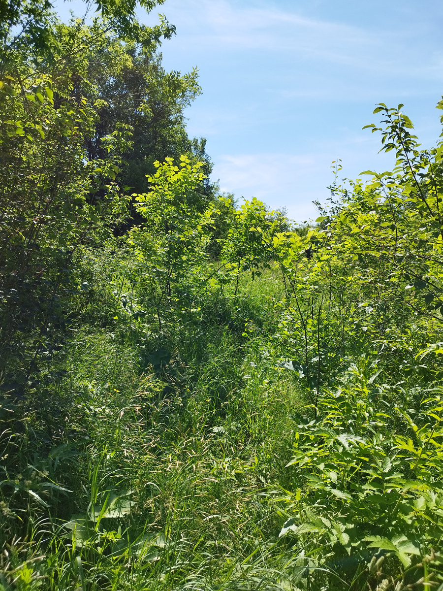 Трава по пояс, местами ямы, муравейники и ветки, спрятанные под травой.