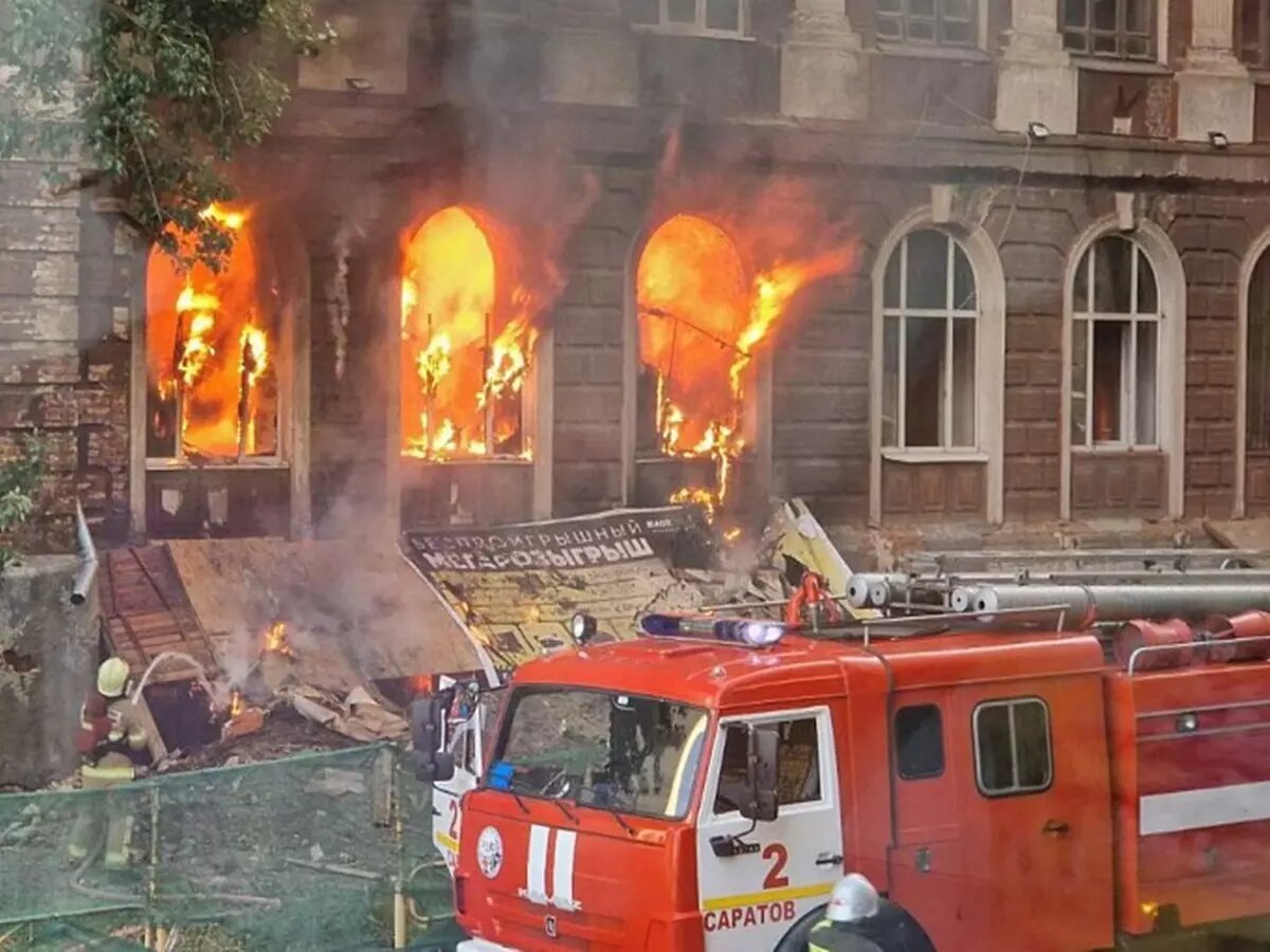 Крупный пожар произошел в школе Саратова, закрытой на капремонт