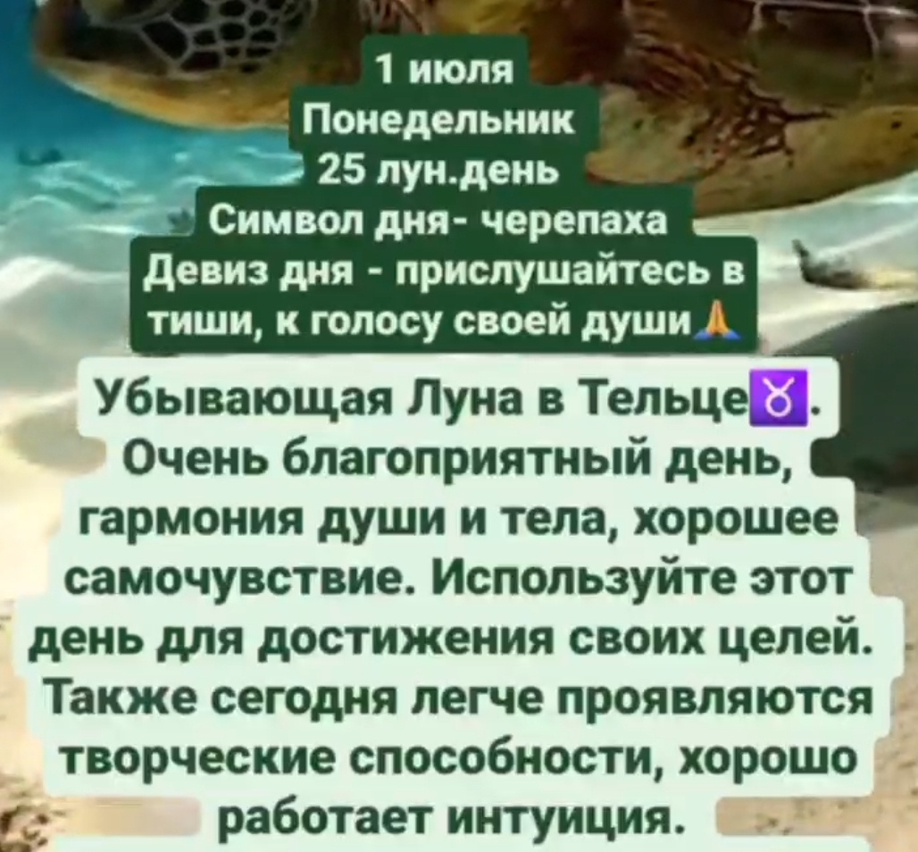 Убывающая Луна в Тельце♉️. Очень благоприятный день, гармония души и тела, хорошее самочувствие. Используйте этот день для достижения своих целей.