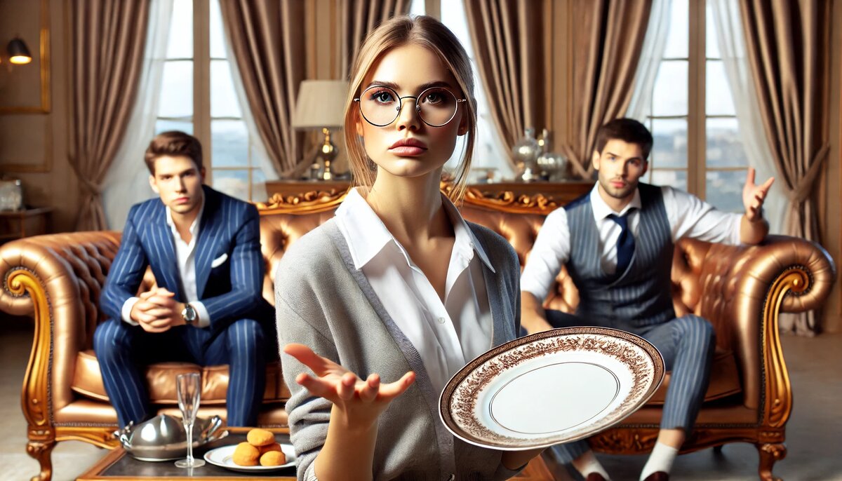 Позже тем же вечером, Ирина сидела в гостиной с книгой. К ней подошла младшая сестра Алена, не скрывая своего "весёлого настроения".