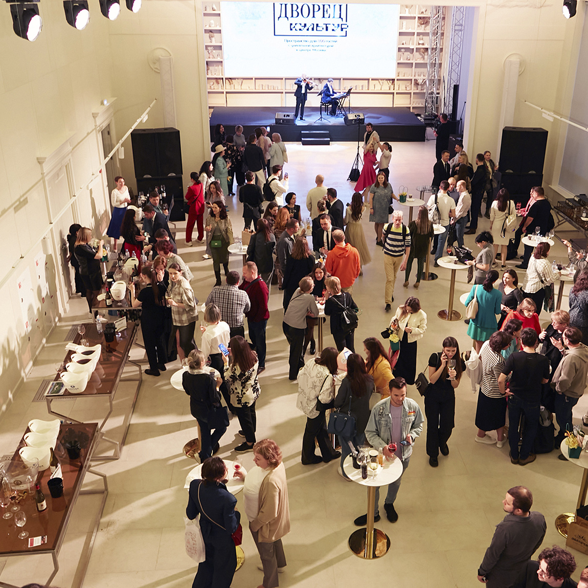 Это огромное историческое здание. Высокие своды, колонны, фрески — всё это великолепие дополняется аккуратно встроенным техническим оснащением: большими LED-мониторами, интерактивными фотозонами, мощным световым и звуковым оборудованием. В зале можно комфортно разместить до 500 гостей. Открытие площадки было ярким и торжественным. Всё в лучших традициях: перерезание красной ленты, фуршеты, дем