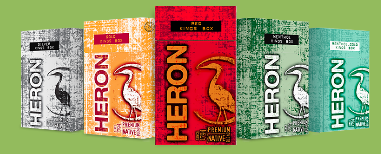 Сигареты "Heron" - их первый бренд, представленный в 2006 году. Выпускается в шести вариантах, как "сотки" так и "кинг сайз", красный, голд, сильвер, ментол, ментол голд и без фильтра! В "сотках" (100 мм) их десять вариаций.