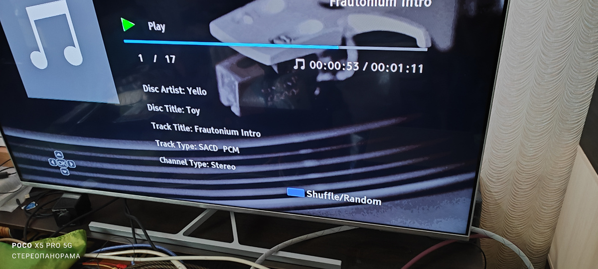 Да, ребята, официально в природе такого альбома на SACD не выходило, так что мы, скорее всего, имеем дело с так называемым "народным творчеством", но при этом проигрывателем диск определяется как SACD (см.заглавное фото), вот только непонятно какова разрядность (проигрыватель информацию о разрядности на дисплей не выводит) . Маловероятно что это 24/96 или 24/192. А вот 24/48 - это вполне вероятно. Тем более что в таком виде альбом действительно официально выходил. И, с большой долей вероятности, именно это послужило исходником для "самописки" на SACD-r (об истории появления которого у меня я уже рассказывал ЗДЕСЬ). И вот руки что называется "дошли" до прослушивания. Но поскольку мне в этот раз было с чем сравнить (альбом "Toy" есть у меня в коллекции на фабричном CD), то я не преминул это сделать. Правда для корректности сравнения я слушал оба диска на одном аппарате: универсальном проигрывателе OPPO BDP-95, который обычные CD диски воспроизводит так себе. Но задача стояла сравнить