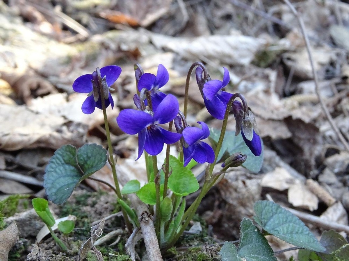 Рядом, по одиночке и небольшими полянками высыпали лесные фиалки, словно крошечные фиолетовые бабочки, опустившиеся на землю. Кажется, лишь дунет ветер, и они взлетят прямо к синему небу, откуда и прилетели.