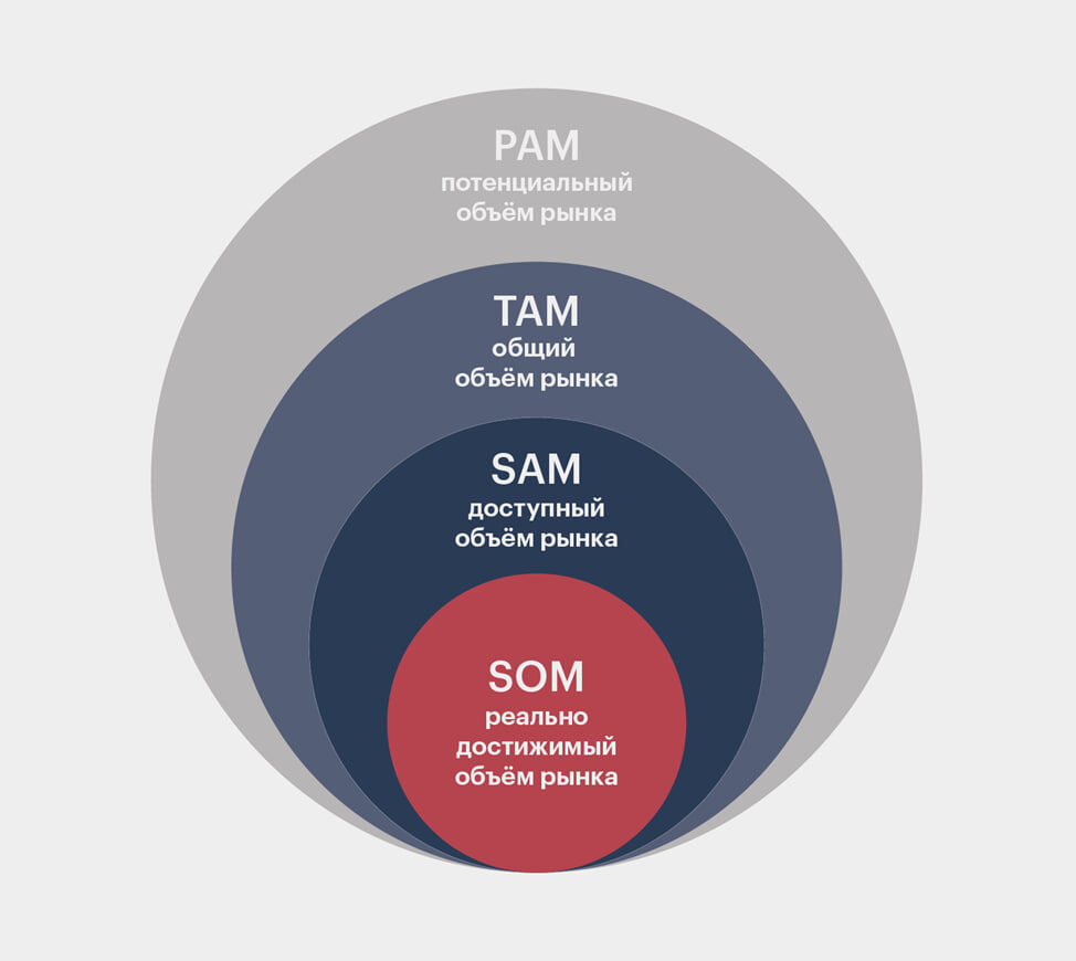 PAM, TAM, SAM, SOM — способ оценить объём рынка, популярный в стартапах и растущем бизнесе. Метод используют, когда хотят понять перспективы роста — и то, стоит ли вкладывать деньги в проект. Часто расчёты по этой методике кладут на стол инвестору, прежде чем обсуждать вложения в стартап. Каждый из них соответствует сегменту рынка. Сегменты вложены один в другой. Самый большой — PAM, за ним по очереди идут TAM, SAM, SOM. Таким образом, SOM входит в SAM и во все предшествующие сегменты, а TAM включает в себя SAM и SOM. Ниже мы разберём, что значит каждый из показателей. Методику мы изучим на примере онлайн-сервиса — журнала для бухгалтеров, работающих в школе. У журнала есть сайт, но 90% его материалов доступны только по подписке. В журнале ведущие эксперты отрасли публикуют инструкции, рекомендации и обзоры новостей законодательства. Система продаж очень простая. Менеджеры по продажам обзванивают частные и муниципальные школы и предлагают бухгалтерам почитать несколько номеров бесплатн