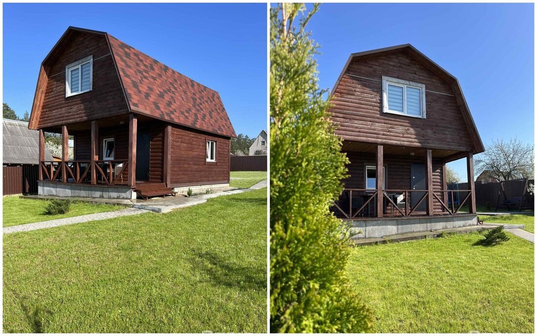 В СТ между МКАД-2 и биологическим заказником Глебковка продается новый дом с коммуникациями и мебелью. Дача с террасой построена из бруса, имеет такой же экологичный интерьер внутри. Посмотрите, как выглядит дом, а главное - узнайте его стоимость. Двухэтажный дом продается в СТ "Атлант-2" в Смолевичском районе. Его построили из профилированного бруса в 2021 году. На крыше лежит мягкая черепица. Общая площадь дачи - 74,8 м². Дом полностью готов не только к отдыху, но и проживанию. Внутри сделан хороший ремонт: комнаты отделаны деревом, стоит мебель, необходимая сантехника и бытовая техника. На первом этаже разместилась кухня и гостиная. Также на этом уровне есть совмещенный санузел с душевой кабиной и бойлером. В дом введена вода, канализация. Отопление здесь электрическое. На втором мансардном этаже обустроены две комнаты. К дачи прилегает крытая терраса, где легко помещается садовая мебель. Участок занимает 8 соток. Он огорожен забором. Сама территория зеленая и ухоженная: сделаны дор