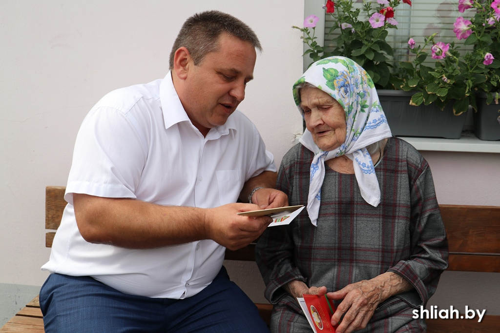 В преддверии Дня Независимости Республики Беларусь Рипина Жабинская, узница концлагеря, получила юбилейную медаль к 80-летию освобождения Беларуси от немецко-фашистских захватчиков. Награду вручил первый заместитель председателя райисполкома Руслан Жуковский. К поздравлениям Руслана Михайловича присоединились начальник управление по труду, занятости и социальной защите райисполкома Зоя Крачковская, заместитель директора УТЦСОН «Тёплый дом» Людмила Олехно, председатель райкома профсоюза работников АПК Светлана Шавлюк, первый секретарь райкома ОО «БРСМ» Екатерина Сороко, а также представители ПКУП «Совхоз Сморгонский» - главный специалист по идеологической работе Вадим Буйновский и председатель первичной профсоюзной организации Виктория Болохонова. Также гости передали поздравление Александра Лукашенко с Днём Независимости, а также подарили цветы и подарки. Сколько всего перетерпела эта миниатюрная женщина! С малых лет жизнь испытывала её на прочность и сильную волю. Рипина Жабинская р