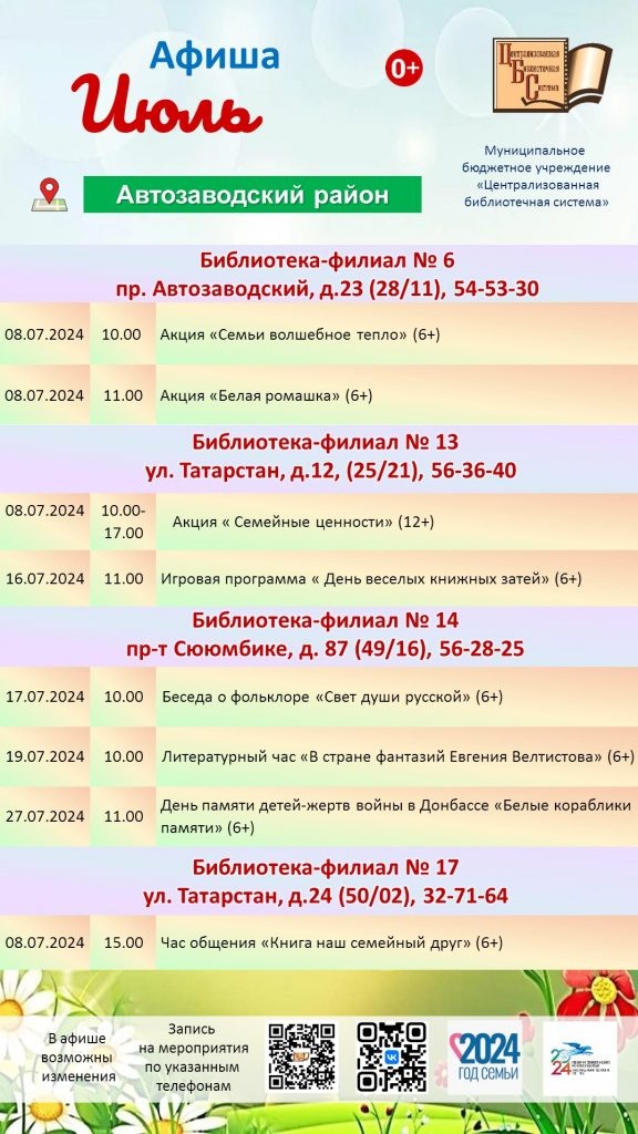 Афиша мероприятий в библиотеках МБУ «ЦБС» на июль 2024 года