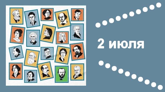 300 лет немецкому поэту Фридриху Готлибу Клопштоку (Friedrich Gottlieb Klopstock, 1724 -1803) 155 лет шведскому писателю Яльмару Сёдербергу (Hjalmar Söderberg, 1869-1941) 85 лет российской писательнице Ольге Ивановне Татариновой (1939-2007) немецкий писатель Герман Гессе (Hermann Hesse; 1877-1962) японский писатель Тацудзо Исикава (Ishikawa Tatsuzō, 1905-1985) польская поэтесса, лауреат Нобелевской премии по литературе 1996 года. Вислава Шимборская (Maria Wisława Anna Szymborska, 1923-2012) шведская писательница Анника Тор (Annika Thor, 1950) российский поэт Станислав Львовский (настоящее имя — Юрий Михайлович Сорочкин; 1972) украинский и российский писатель Платон Сергеевич Беседин (1985) французский писатель Жан-Жак Руссо́ (Jean-Jacques Rousseau; 1712-1778) советский писатель Евгений Петрович Петров (настоящая фамилия — Катаев; 1902-1942) польский писатель Вильгельм Мах (Wilhelm Mach, 1917-1955) американский писатель, лауреат Нобелевской премии по литературе 1954 года Эрнест Хемингу