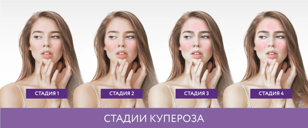 ☀️1-я стадия — для нее характерно усиление чувствительности кожи, например, реакция на жару, может появится временное покраснение, раздражение с просвечивающими тонкими капиллярами. ☀️☀️2-я стадия — краснота становится стойкой, постепенно расширяющиеся капилляры объединяются в сеточку, а сосуды становятся ярко окрашенными. Реакция на жару-холод очень долго не проходит. ☀️☀️☀️3-я стадия — ярко выраженная и стойкая краснота на отдельных участках, на которой отчетлива видна сосудистая сеточка. Кожа приобретает сероватый оттенок или же, наоборот, вы вся как поросеночек. Могут появиться воспаления! Это уже предвестник розацея. ☀️☀️☀️☀️4-я стадия — в патологический процесс вовлекаются сосуды по всей поверхности лица, кожа утолщается, становясь грубой. Отдельные сосуды приобретают синюшный и бордовый оттенок. Кожа может зудеть и чесаться. Постоянная сухость и шелушение. *1 стадия может применять ретинол совершенно спокойно, но почитайте мою статью. 2 стадия осторожно, преимущественно дневной