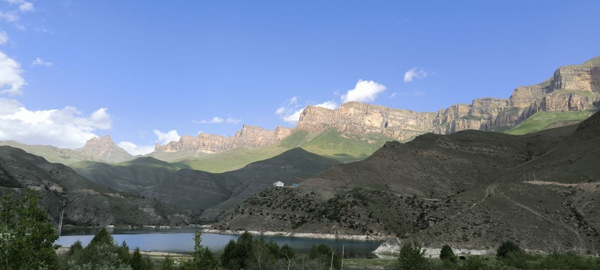 Мы достаточно быстро доехали до первой точки - озеро Гижгит, которое находится в обрамлении чудесных гор.