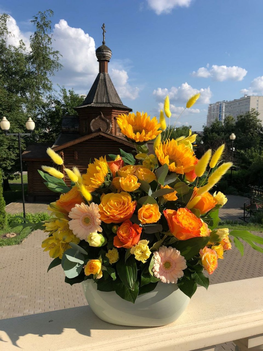 Однажды святитель Лука (Войно-Ясенецкий) точно подметит, что благоухание цветов — это фимиам Богу. Цветы — кадильницы» В нашем храме свт.ИОВА вовсю готовятся к Престольному празднику - он у нас 2 июля. Сегодня мы придем на молебен с чтением Акафиста святителю ИОВУ. А там уже всё украсили. Поделюсь, традиционно, с вами, мои хорошие, православной красотой. Смотрите на работу наших флористов, что сотворили их умелые ручки. Начинаем рассматривать эти благоговейные акценты в убранстве Храма. Букет первый на фоне часовни святителей Московских. Она на территории храма свт.ИОВА Интересный факт нашла: флористика появилась в 1930-м году, потом , со временем, "пришла"в Церковь. Икона святителя ИОВА и рядом с ней красивые корзинки цветов. Листайте, там крупным планом цветы. Храм - это образ Горнего Иерусалима. И церковное искусство показывает нам образ преображенного мира, где главный - БОГ. Цветы и растения мы можем увидеть и в иконописи, и в росписи храма, на фасадах и, конечно же, в храмо