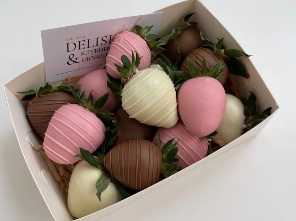 В доме, где любят клубнику в шоколаде, меньше ссор и недопонимания, потому что наши десерты делают людей добрее друг к другу. Мы знаем точно: сладкие ягоды, покрытые тонким слоем бельгийского шоколада, способны творить чудеса и создавать атмосферу тепла и уюта. Коробочка с прозрачной крышкой, перевязанная атласной лентой и упакованная в транспортировочный пакет, готова порадовать вас и ваших близких этим изысканным лакомством. 🍓🍫Условия хранения: Хранить от +3 до +15 градусов! 🍓🍫Состав: Свежая клубника, бельгийский молочный, белый и розовый (окрашен пищевым красителем) шоколад фирмы Callebaut. Почему стоит попробовать наш набор? 1. Изысканное сочетание вкусов: сладкие ягоды и бельгийский шоколад создают неповторимую симфонию вкусов, которая порадует ваши вкусовые рецепторы. 2. Высокое качество ингредиентов: мы используем только лучшие ингредиенты, чтобы каждый кусочек нашего десерта приносил вам удовольствие и наслаждение. 3. Идеальный подарок: мини-набор станет прекрасным подарком