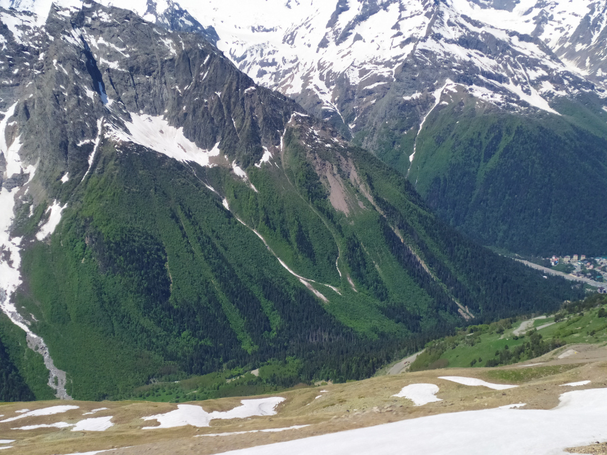 Хотя Домбай и горнолыжный курорт, летом здесь тоже можно активно отдохнуть. Да не просто отдохнуть, а ещё и полюбоваться на прекрасную природу горных ущелий, бурных рек, цветущих лугов и заснеженных вершин! И всё это, например, в июне. Начало рассказа о нашем путешествии в Домбай можно прочитать здесь: Добрый день дорогие подписчики и гости канала. Сегодня отправляемся в горы, тем более что погода выдалась солнечная, безветренная. Домбайская поляна, со всех сторон окружена горами. Наиболее известная вершина - Мусса-Ачитара (3 200 м). На ее склоны ведут три канатные дороги - новая гондольная, маятниковая и старая кресельная. Мы выбрали новую. Ну что, Поехали! Новый комплекс канатных дорог был возведен в 2008 году. На сегодняшний день он считается наиболее надёжным, более скоростным и более дорогим соответственно. Но именно на новой канатной дороге можно добраться до самой высокой точки - 3168 метров. Цены на билеты можно посмотреть здесь. От нижней станции (1590 м) поднимаемся вверх в