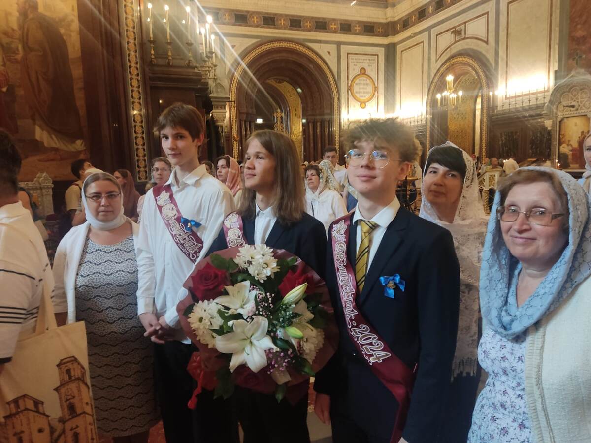27 июня по благословению Святейшего Патриарха Московского и всея Руси Кирилла в Храме Христа Спасителя были проведены выпускные торжества православных школ и гимназий города Москвы: молебен в Храме Христа Спасителя и вручение аттестатов в зале Церковных соборов. Торжественное мероприятие началось с благодарственного молебна у мощей святителя Филарета, митрополита Московского и Коломенского. Молебен возглавил иеромонах Онисим (Бамблевский), председатель Отдела религиозного образования Московской епархии. Ему сослужили духовники православных школ и гимназий Москвы. По окончании молебна отец Онисим обратился к выпускникам с приветственным словом, поздравив их с окончанием школы и началом нового этапа жизни. После молебна состоялось традиционное фотографирование на память у Храма Христа Спасителя, а затем праздничное мероприятие с церемонией вручения аттестатов. Во время торжественного награждения отец Онисим вручил аттестаты 48 медалистам, среди которых были выпускники гимназии им. митр.