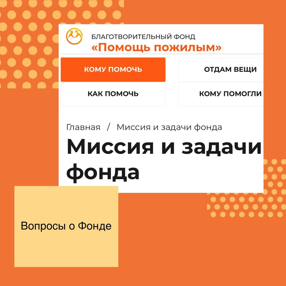 Сообщество благотворительности, решение социальных проблем нуждающихся пожилых людей - вот цели, которые ставит перед собой наш благотворительный Фонд Помощь пожилым! https://fond60.ru/mission/ Мы обеспечиваем условия для достижения поставленных задач и получения реальных результатов. Объединение государственных ресурсов, бизнеса и некоммерческих организаций, а также частных жертвователей - наша основная задача. Для эффективной помощи мы создаем аналитическую базу данных с информацией о каждом из подопечных, что позволяет проводить качественный анализ и оценку помощи. Мы стремимся к тому, чтобы помочь тем, кто нуждается в нашей помощи, работая усердно каждый день. Наш фонд предоставляет дорогостоящие лекарства и предметы ухода, которые не всегда доступны со стороны государства. Для нас важна каждая жизнь, и мы прилагаем все усилия, чтобы облегчить старость нашим подопечным. Мы не ограничиваемся лишь материальной поддержкой, но также помогаем в решении социальных и бытовых проблем по