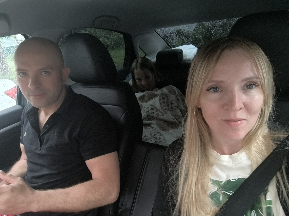 Ехали на машине из Перми: я, муж и дочка. Рано утром выехали, вечером приехали.