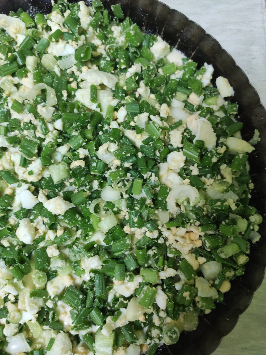 Свежий урожай зелёного лука я использовала во вкусный заливной пирог . Ингредиенты : - 5 ст.л. сметаны; - 2 яйца; - 1 ч.л. соли (без горки) - 1 ч.л. сахара (без горки) - 6 ст.л муки Начинка может быть любая! У меня - 2 отварных яйца - 200 гр зелёного лука ❗ Форма для запекания у меня 26 см❗ Соединяем сначала жидкие ингредиенты , затем вводим в смесь сухие ингредиенты. Заливаем одну часть теста в форму, затем выкладываем начинку, и снова заливаем оставшиеся частью теста. Выпекаем в разогретой духовке при температуре 180 градусов, 25-30 минут. Приятного аппетита ♥️