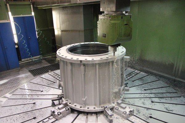 Оборудование будет задействовано в составе реконструируемого блока разделения воздуха кислородной станции КС-2 для увеличения производительности воздухоразделительной установки. Корпус воздушной центробежной машины на механической обработке. Фото: РЭП Холдинг. Компрессоры К1700 предназначены для сжатия атмосферного воздуха и подачи его в криогенную воздухоразделительную установку для дальнейшей очистки, сжижения и разделения на кислород и азот. Это шестиступенчатые, трехсекционные агрегаты, каждая секция которых состоит из двух ступеней сжатия. Приводом компрессора служит синхронный электродвигатель мощностью 10 МВт. Новые воздушные центробежные машины будут смонтированы на месте аналогичных меньшей мощности, также изготовленных на Невском заводе, которые эксплуатировались на металлургическом предприятии более 35 лет с 1988 года, в настоящее время находятся в рабочем состоянии и выполняют свою функцию. Новые мощности на кислородной станции № 2 Надеждинского металлургического завода им.