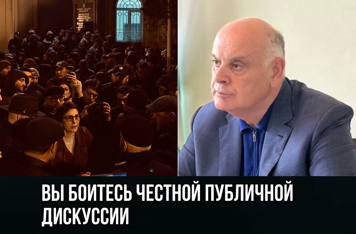 Я отдаю себе отчет в том, какие новые вызовы переживает наша страна и в какой сложной геополитической ситуации она находится сегодня. Ввиду этого, ответственность руководителей Абхазии требует взвешенного подхода к решению судьбоносных вопросов, а также умения честно и открыто вести диалог как со своим обществом, так и на межгосударственном уровне, и важно не избегать чувствительных моментов и находить понимание опасений абхазского общества. Но сегодня мы видим совершенно иное – власть занята решением меркантильных личных вопросов, пренебрегая озабоченностью представителей абхазской общественности относительно проводимой Вами беспечной политики, угрожающей безопасности нашей страны. Возведенный Вами многометровый забор с устрашающими пиками вокруг комплекса правительственных зданий, отгораживающий Вас от народа, тому подтверждение.