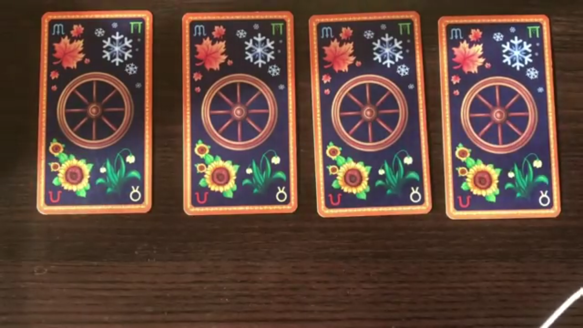 Итак, мы будем делать расклад на четырёх картах. Вам нужно будет выбрать одну из них — от 1 до 4. По мере того, как я буду переворачивать карты, я буду объяснять их значения. Ещё раз напоминаю, что задавать вопрос нужно чётко и конкретно, стараясь выбрать карту максимально правильно.