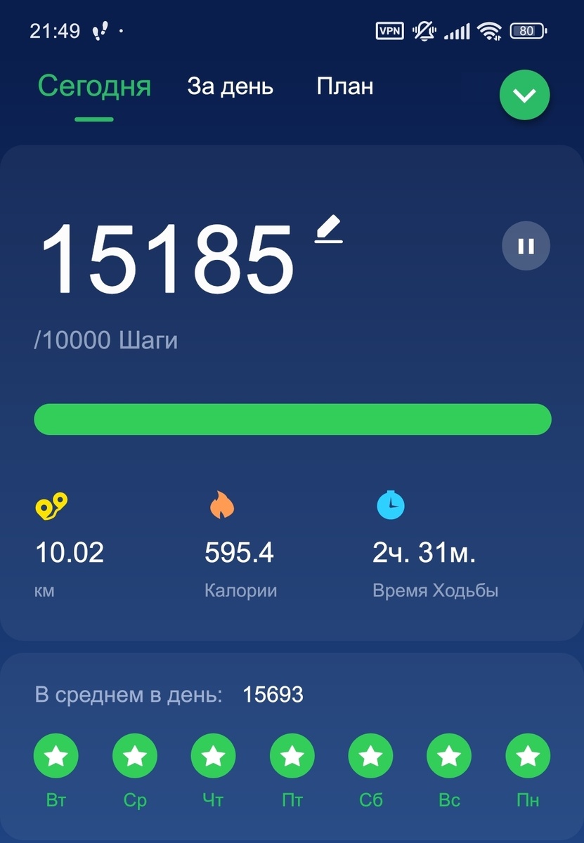 Мой первый - ознакомительный - рабочий восьмичасовой день на пятидневке. Один перерыв на обед и напряжённое сидение в кресле с девяти утра до шести вечера. Огромное количество новой информации, от которой к вечеру голова становится квадратной. Жара 34 градуса. На столе стоит бутылка с водой и стакан - это не даёт мне окончательно растечься по лоджии, хотя в какой-то момент я уже начинаю чувствовать бульканье своего внутреннего аквариума. Ходить некогда от слова совсем. Но я была бы не я, если бы не придумала способ, как не пропустить день в Шагомере. В обед мне хватило двадцати минут на поесть, а остальные 40 минут я ходила. После работы (в 18.00) ужин. Через полчаса села за домашнее задание и просидела ещё два часа, изучая новую информацию и подтверждая её пройденными тестами. И вот, наконец, ноутбук выключен, и я свободна. Устала? Конечно. Могла бы отдыхать? Конечно. Но что делаю я?) Правильно, я иду на домашний подиум и продолжаю ходьбу. За окном льёт дождь, окна на лоджии прио