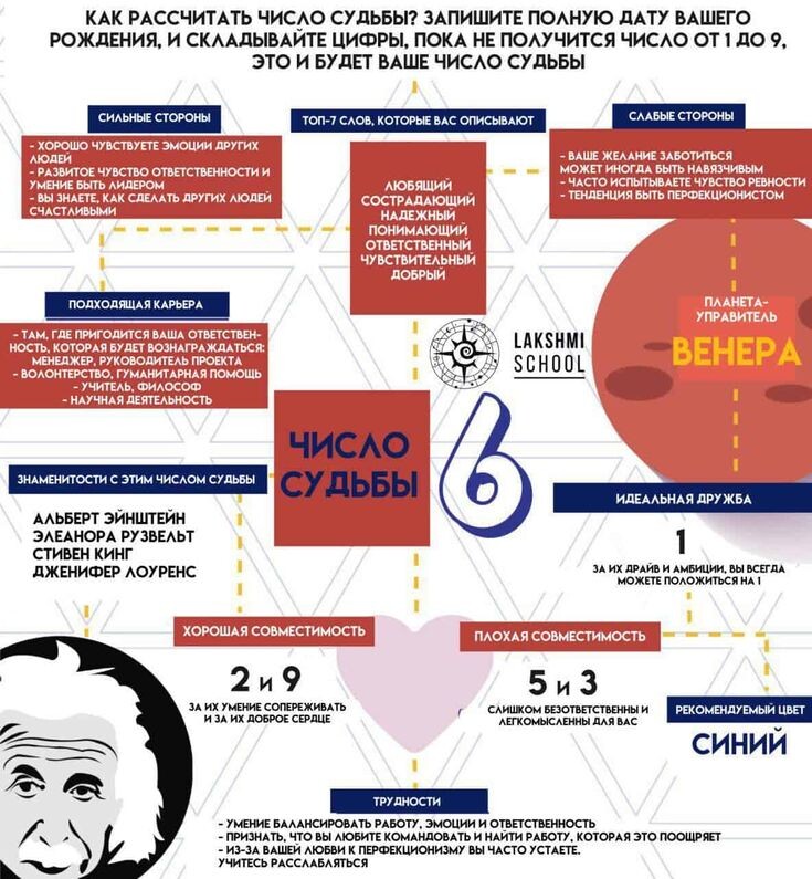 Число судьбы 6: значение, характеристики и влияние на жизнь человека Число судьбы – это одно из основных чисел в нумерологии, которое определяет характер и предназначение человека. Каждому человеку присуще свое число судьбы, которое влияет на его жизнь, отношения, работу и другие аспекты. В данной статье мы рассмотрим число судьбы 6 – его значение, характеристики и влияние на жизнь человека. Число судьбы 6 олицетворяет гармонию, баланс и любовь. Люди с числом судьбы 6 обладают высоким чувством ответственности, они заботятся о близких и готовы помогать другим. У них развито чувство справедливости, они стремятся к гармонии в отношениях и окружающем мире. Основные характеристики числа судьбы 6: - Люди с числом судьбы 6 обладают тонкой интуицией и хорошо развитым эстетическим вкусом. - Они склонны к творчеству и умеют находить красоту в простых вещах. - В работе они часто выбирают профессии, связанные с обслуживанием людей, медициной, образованием или искусством. - Число 6 символизиру