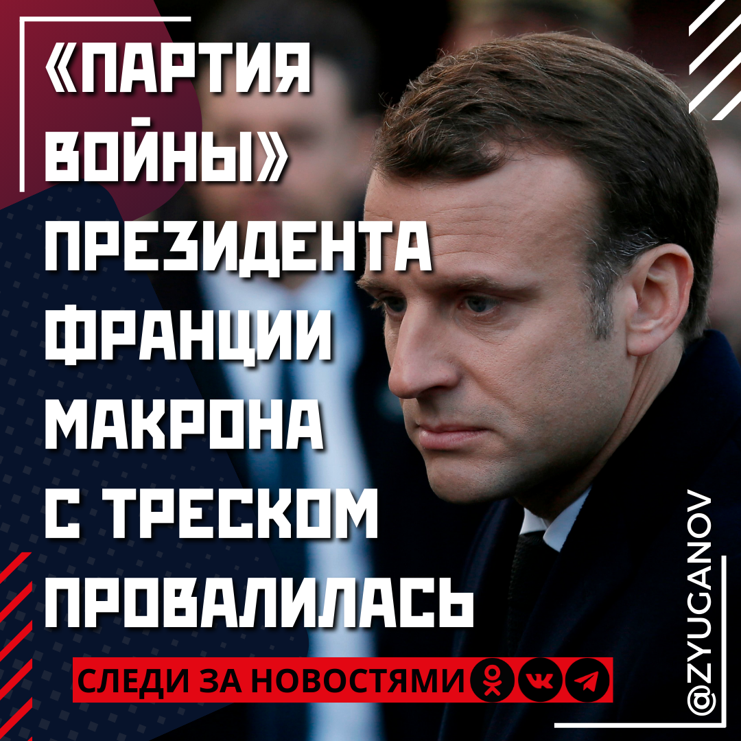 «Партия войны» президента Франции Макрона с треском провалилась, получив третий результат - 21,5% - в ходе первого тура досрочных парламентских выборов. Партия «Национальное объединение» Марин Ле Пен, выступающая за дружественные отношения с Россией, заняла первое место, набрав 34,2% голосов избирателей. Второе место и 29,1% голосов - у союза левых партий Меланшона.