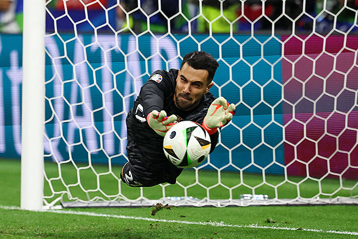 В такие вечера сложно и как будто неуместно увлекаться числами. В серии пенальти матча Португалия – Словения мы увидели драму и, возможно, лучший вратарский перфоманс в истории Евро. Диогу Кошта потащил три удара из трех, в этих прыжках спас душу Криштиану Роналду (а заодно и Пепе), протащил Португалию в четвертьфинал. На этом можно остановиться. Но для украшения подвига Диогу Кошты решим несколько математических примеров и покажем кое-что поразительное. Потому что этот вратарский концерт выходит за рамки. Общеизвестно, что в серии пенальти у бьющего огромное преимущество. Вероятность гола при ударе среднестатистического игрока – 79% (или xG 0,79). Но есть «но»! Игроки не всегда попадают в створ. А если попадают, шансы на гол взлетают ближе к 99,9% – в зависимости от точки, куда летит мяч. Эти вероятности отражаются через показатель xGOT (xG on target) – тот же xG, но скорректированный с учетом попадания в створ. Модель выдает вероятность гола при попадании мяча в определенную точку во