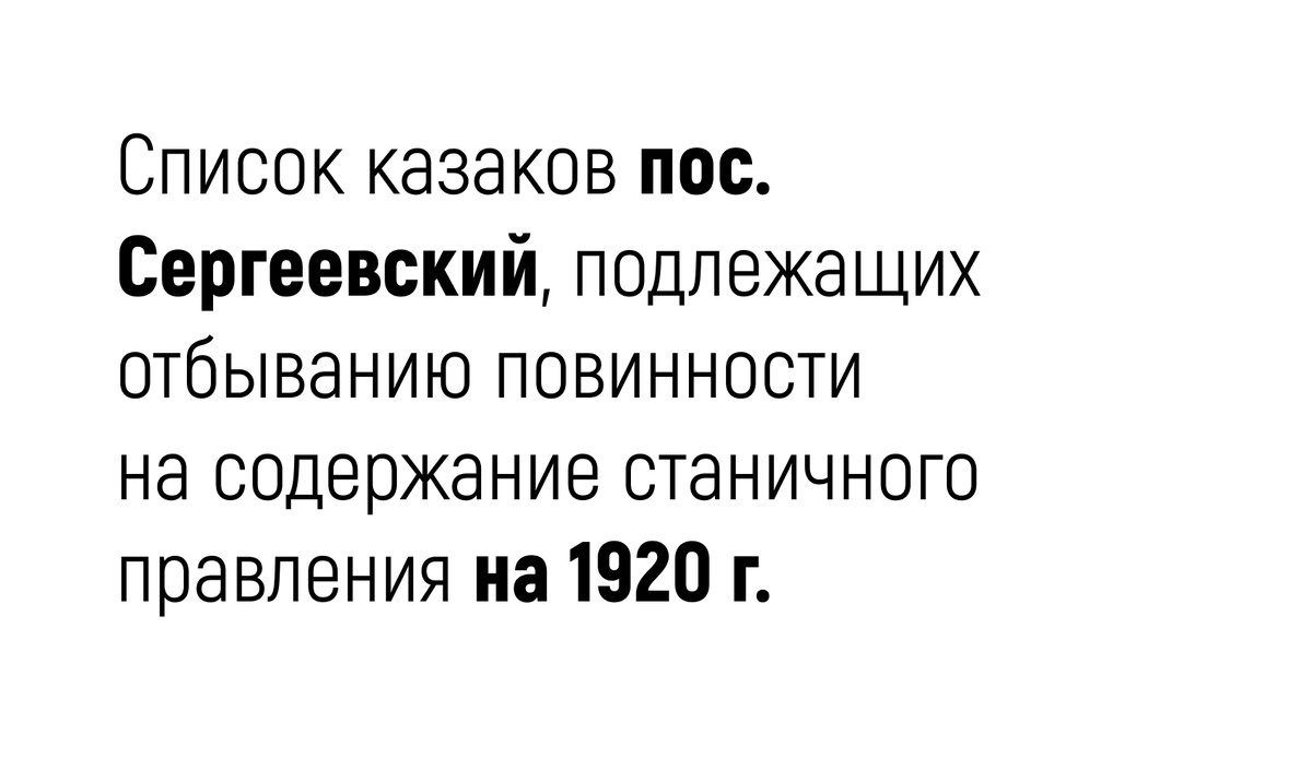 Ниже привожу список семей казаков пос. Сергеевский Гродековского станичного округа (современный Пограничный район), подлежащих отбыванию повинности на содержание станичного правления на 1920 г. с указанием ФИО и возраста.