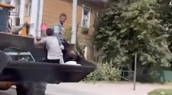 Ранее в соцсетях было опубликовано видео с движущимся по проезжей части улицы Большая Печерская погрузчика, в ковше которого находились двое мужчин.