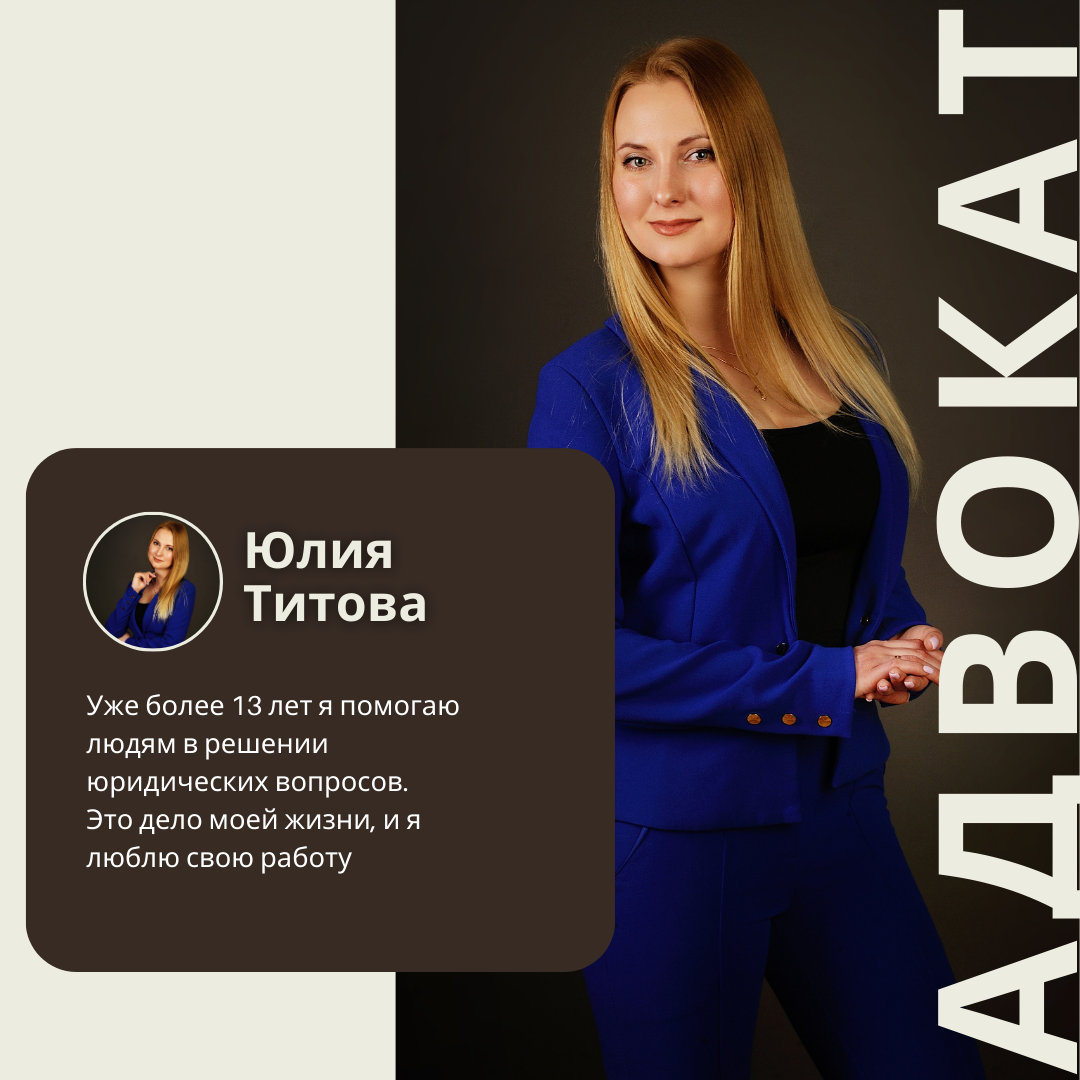 Привет! Меня зовут Юлия Сергеевна Титова, и я адвокат. Уже более 13 лет я помогаю людям в решении юридических вопросов, из которых более 5 лет как действующий адвокат. Это дело моей жизни, и я люблю свою работу.