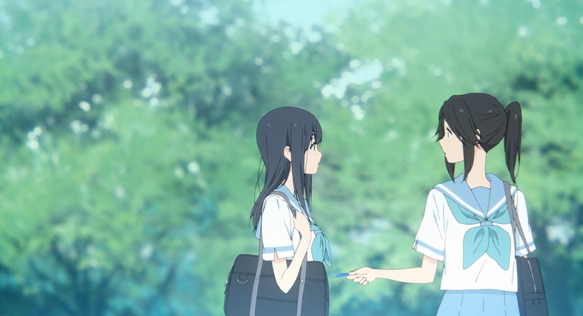 Иногда Касаки сложно понять подругу. Мидзорэ замкнута, мало разговаривает и Нодзоми не знает о чём она думает. Но это не мешает им быть всегда вместе. Школьный оркестр готовился к Конкурсу и готовит музыкальную постановку по сказке "Лиз и синяя птица". И у Мидзорэ, которая представляет Лиз гобоем, и Нодзоми, озвучивающая флейтой Синюю Птицу, дуэт в партии.
