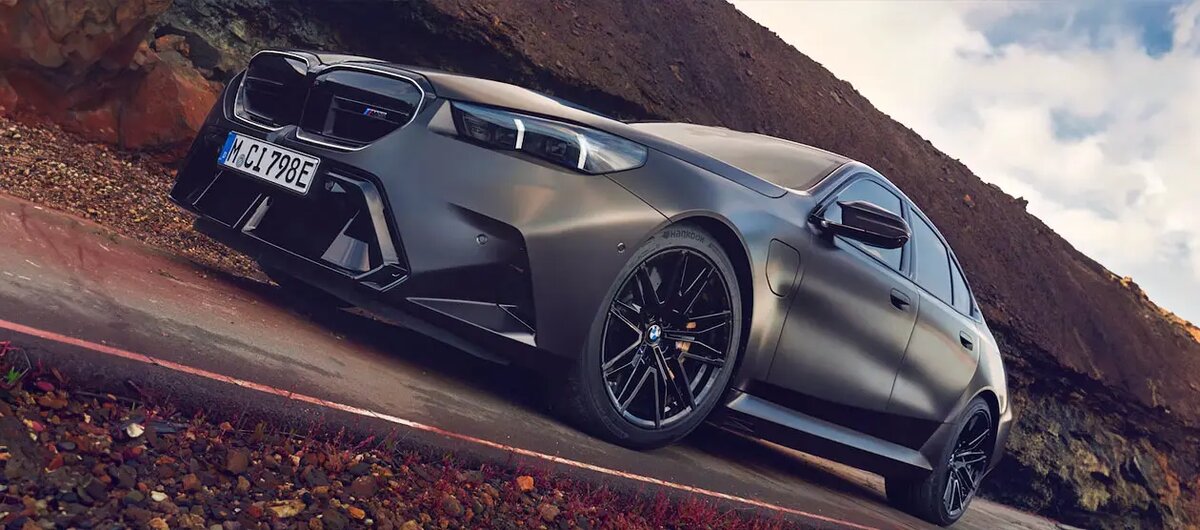 Представлен новый высокопроизводительный седан BMW M— с индексом G90. Это самая мощная и самая тяжёлая заряженная «пятёрка» в истории модели. Рассказываем‚ какой она получилась. От гражданской BMW 5 в кузове G60 заряженная M5 отличается агрессивными аэродинамическими обвесами с увеличенными воздухозаборниками. На крышке багажника установлен лип-спойлер, а на нижней части заднего бампера — массивный диффузор, который обрамляет четыре патрубка выхлопной системы. Решётка радиатора оснащена подсветкой. Также расширены колёсные арки — для того, чтобы в них поместились штатные колёса размерами 285/40 ZR20 (спереди) и 295/35 ZR21 (сзади). Из-за этих доработок длина и ширина M5 выросли — до 5096 мм и 1970 мм соответственно, а высота стала меньше — 1510 мм. В салоне установлен M-руль нового поколения с усечённой нижней частью, красными кнопками выбора режимов и красной нулевой меткой. Виртуальная приборная панель, которая соединена с монитором мультимедиа, уже известна по другим моделям марки.