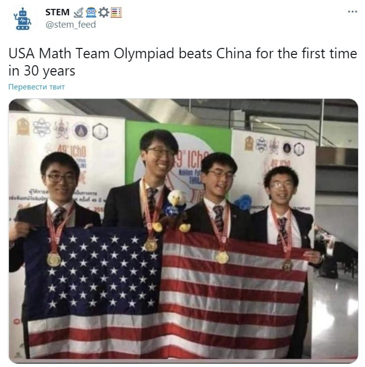 Если мы посмотрим результаты всевозможных научных Олимпиад, проводимых по всему миру, то увидим, что все призовые места, как правило, завоёвывают ребята из России, Китая и Индии. Европейцов там даже близко не стояло, а вот американцам иногда кое-что достаётся. Правда, выглядит их команда в подобных случаях обычно вот так: Да, американская система образования давно не даёт этого самого образования. Поэтому теслы, айфончики и старлинки создают выходцы из других стран. Приехавший в Штаты в 1992-м году Илон Маск не так давно сам признавался, что предпочитает брать на работу выходцев из России. И правильно делает, кстати. Но, тем не менее, тысячи людей по всему миру хотели бы учиться в США. Почему? Да всё потому же. Реклама, маркетинг и, как обычно, деньги. Местная профессура привыкла хорошо питаться. Поэтому сотни голливудских фильмов расскажут вам, что отучившись в Гарварде или Стэнфорде вам практически автоматом дадут работу на Уолл Стрит, яхту, кадиллак и особняк с видом на Гудзон. Поэт