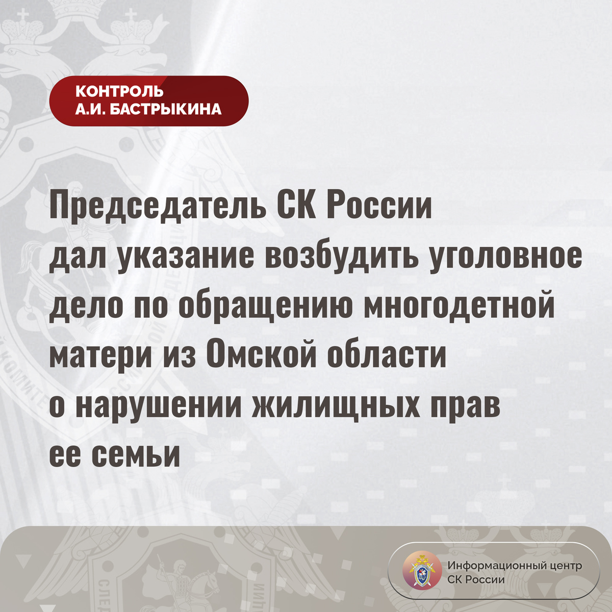 Председатель СК России дал указание возбудить уголовное дело по обращению многодетной матери из Омской области о нарушении жилищных прав ее семьи