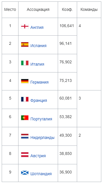 - Ассоциации также могут иметь дополнительные команды, участвующие в Лиге чемпионов УЕФА:
