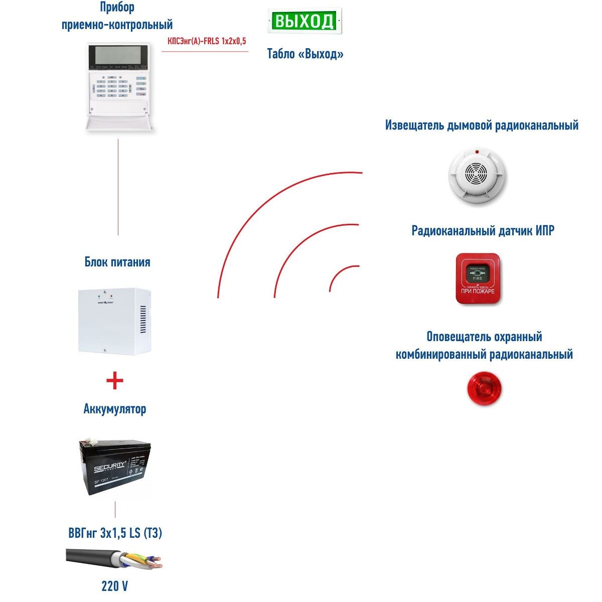 - Наличие в беспроводной номенклатуре всего оборудования, необходимого для построения полноценной системы пожарной сигнализации, оповещения и автоматики.