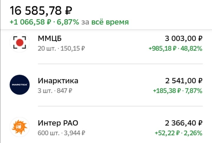 Приветствую! Продолжаю откладывать мелочь и тестировать лучшие варианты накопления. В общем, сравнивая доходность можно смело сказать, что нет смысла диверсифицировать (в широком понимании, если брать весь фондовый рынок) в отдельные акции. Проще покупать акции Мосбиржи, доходность все равно выше набора разных акций. Акции и Мосбиржа На сегодня сумма в наборе такая (потом добавлю за июль еще 2400 после отсечки), когда буду покупать Газпром нефть и Татнефть. Мосбиржа выплатила скромные дивиденды в размере одной тысячи рублей. Добавил немного для покупки одного ежемесячного лота. Прибыль держится в районе 8 процентов. Добиваю сумму до 50 тысяч в наборе акций и буду публиковать только результаты инвестирования в акции Мосбиржи. Пик роста на рынке прошел, дальнейшее инвестирование может быть отрицательным. Тут три варианта повышения доходности: Акции и конкурсы Здесь провожу конкурс репостов, в прошлом месяце выбрал двоих победителей. Первый розыгрыш в 500 рублей будет после 15 июля, вт