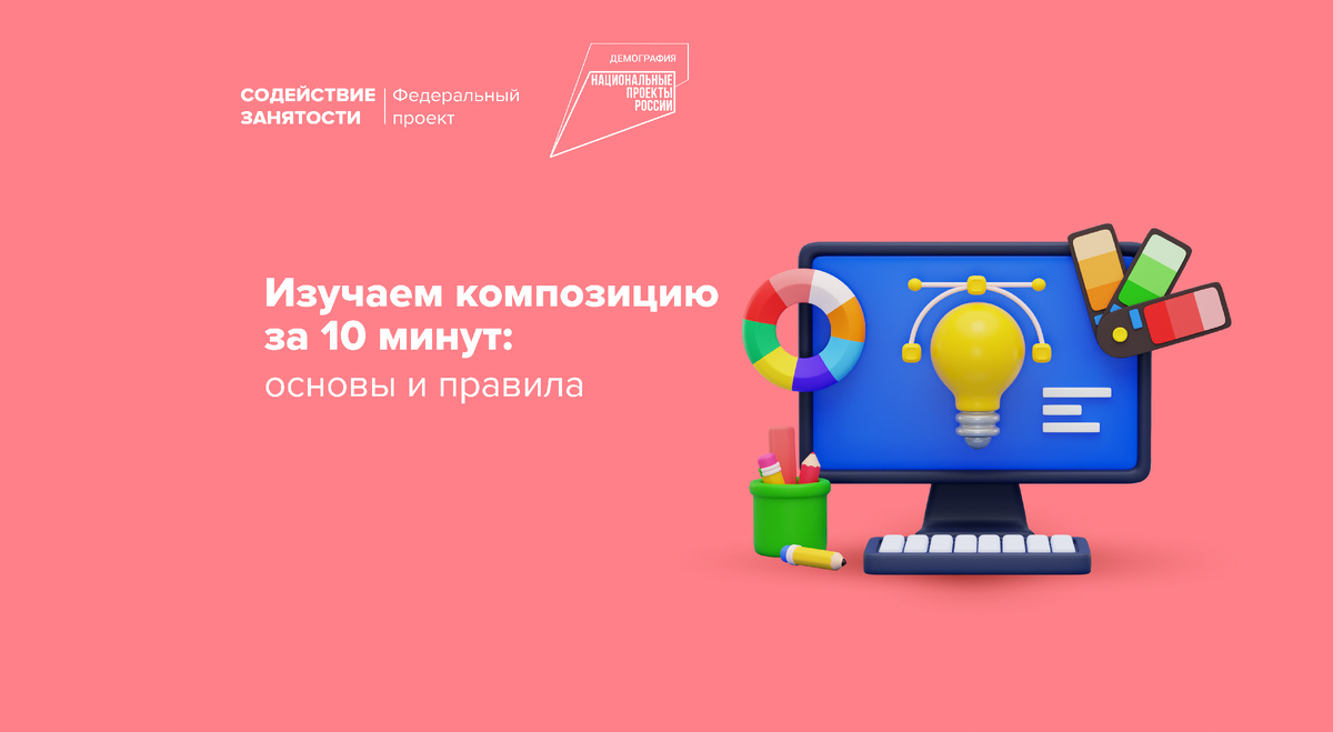 Понятия композиции также важно в работе дизайнера. Разобраться в основах композиции и взаимодействии объектов в графическом дизайне вы можете на бесплатном курсе «Графический дизайнер: старт карьеры».